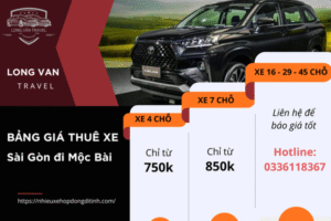 Long Vân Travel không ngừng nỗ lực để trở thành nhà cung cấp dịch vụ thuê xe uy tín hàng đầu, biến mọi chuyến đi của bạn thành một trải nghiệm đáng giá. Liên hệ ngay với chúng tôi để nhận tư vấn và báo giá tốt nhất cho hành trình Sài Gòn đi Mộc Bài! Hotline : 0336118367